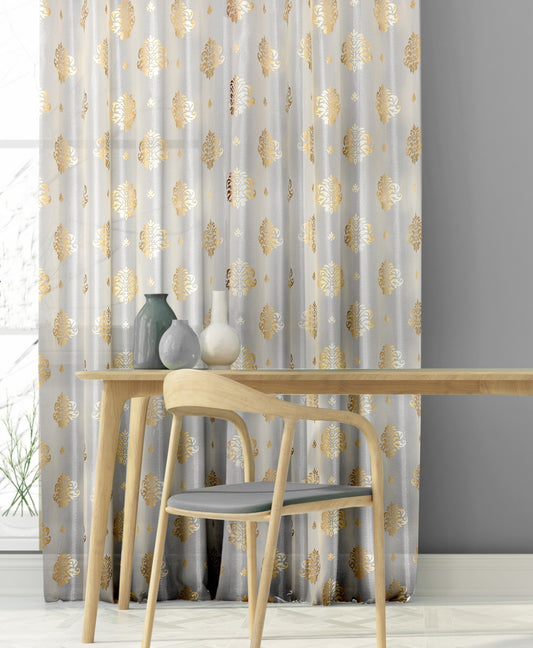 Berlin Gold Sheer Curtain with Elegant Foil Damask Pattern– Luxurious Opulence