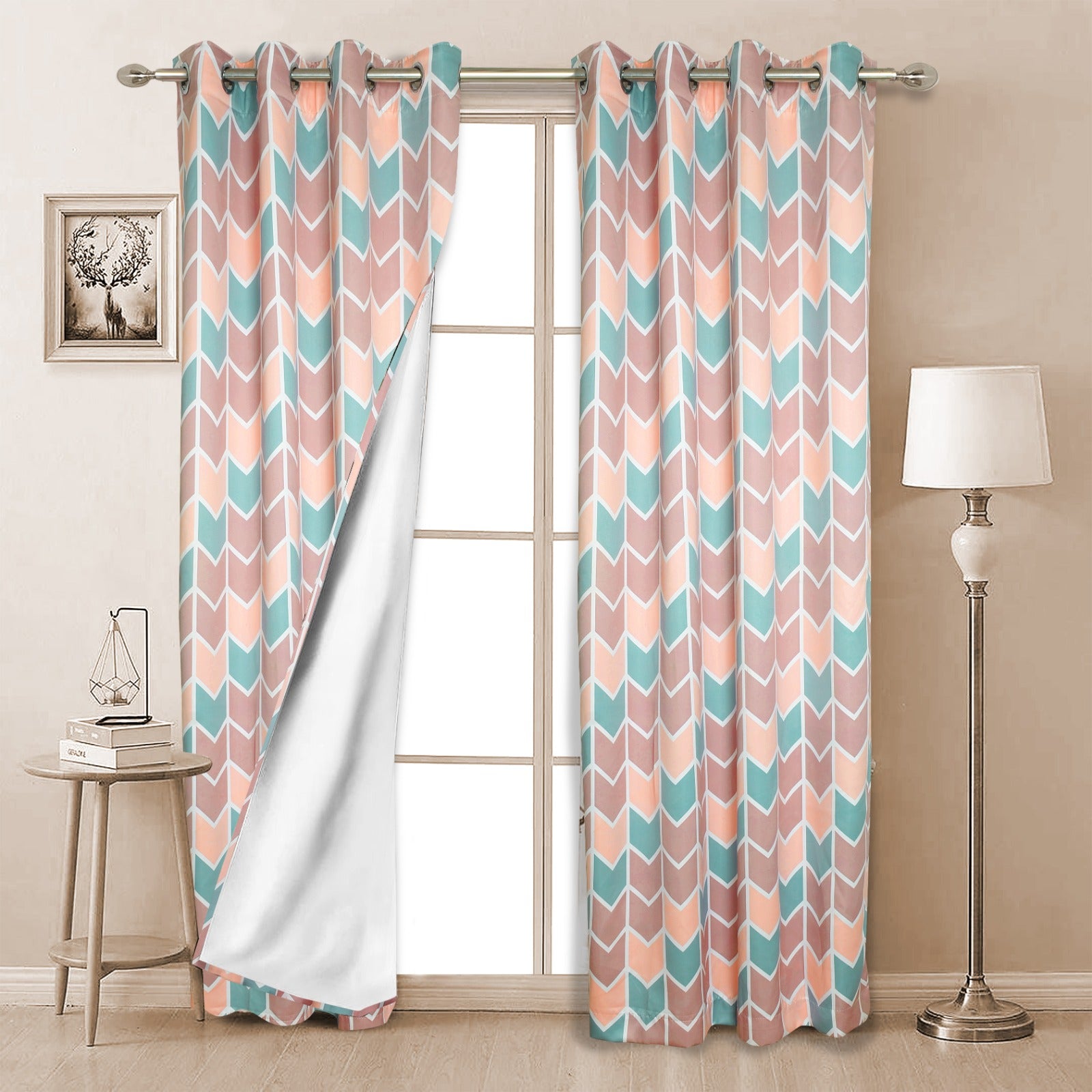 Upton Pink Chevron Curtains – Soft Geometric Design for Modern and Subtle Interiors for Living Room & Bedroom - Grommet Top Drapes